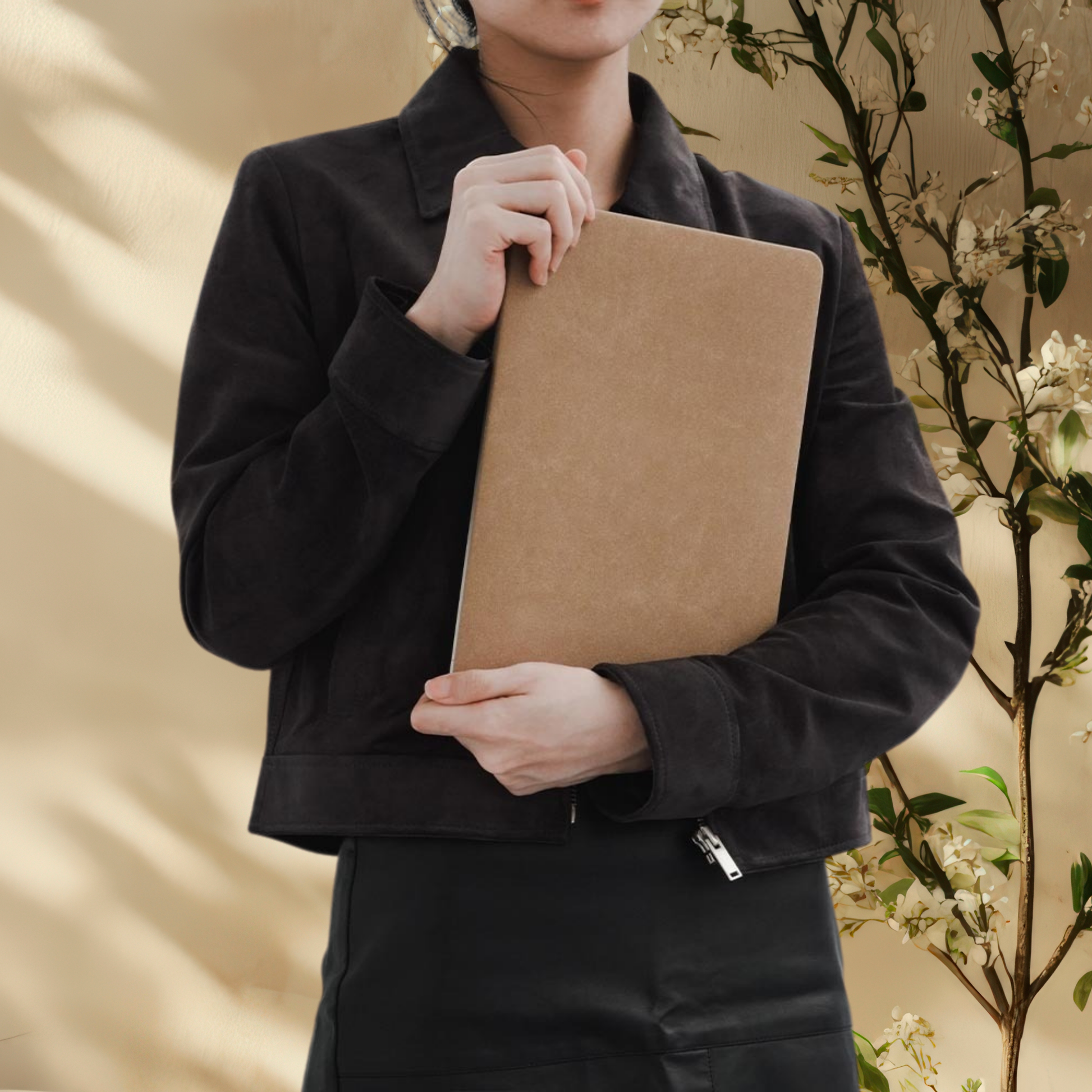 Offrez à votre MacBook une protection haut de gamme avec cette coque en suède marron, conçue pour allier élégance, douceur et sécurité.